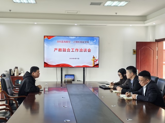 为探索校企协同育人新模式,推动教育链与产业链深度融合,4月16日下午,计算机智能学院于明道楼B429会议室召开产教融合工作洽谈会。深圳蓝海星空科技有限公司林列亮应邀出席,学院院长黄小岭、党总支书记杨谨鸿、教学办主任张乐玲参加会议。